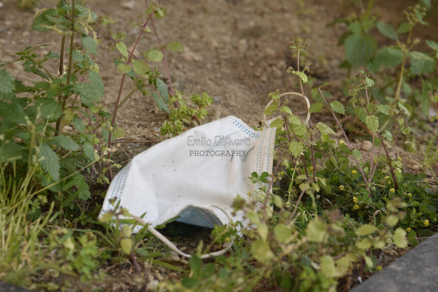 - Una mascherina usata lasciata in un’aiuola © 2020 Emilio D’Averio StabiaNews.it